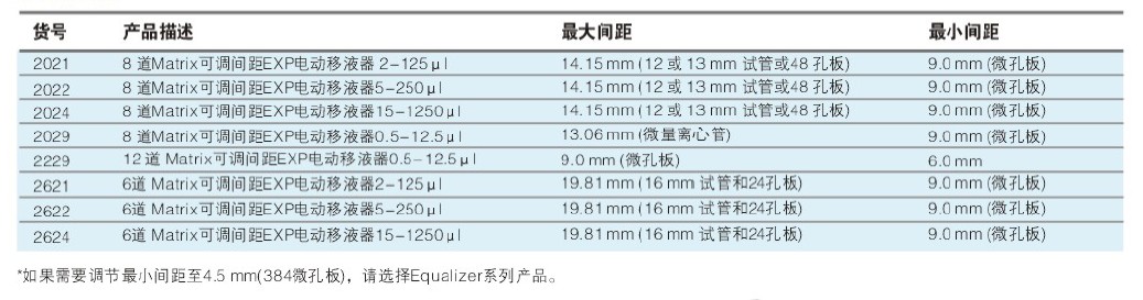商品名稱:Matrix EXP電動(dòng)多道可調(diào)間距移液器