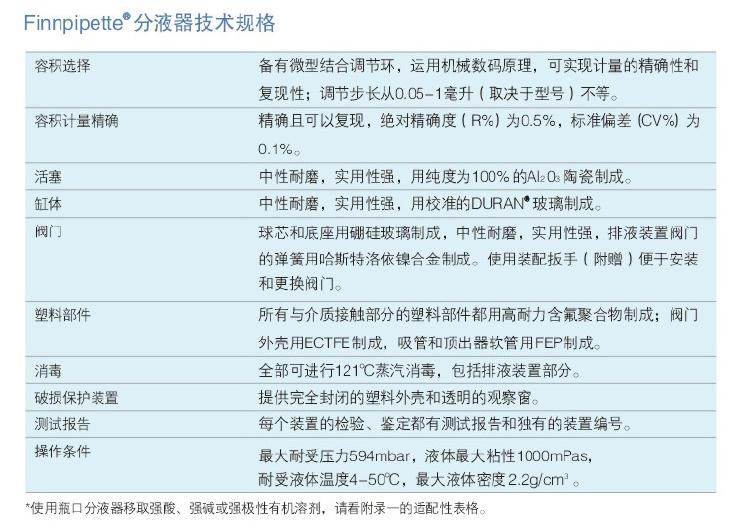 Finnpipette瓶口分液器可分裝任意體積的液體,6種型號覆蓋了0.2ml-60ml的分裝體積。分裝精確、穩(wěn)定、重現(xiàn)性好。
