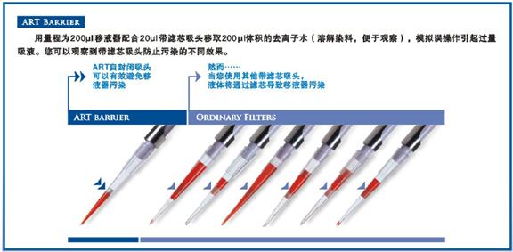 ART系列吸頭采用具有專利的可自封閉濾芯,能有效防止氣溶膠和液體對(duì)移液器吸頭連桿的污染。而普通多孔材料的濾芯,實(shí)驗(yàn)證明污染物仍然能通過(guò)。ART吸頭的出眾表現(xiàn)贏得科學(xué)家的廣泛信任,成為無(wú)可取代的實(shí)驗(yàn)室常備消耗品。